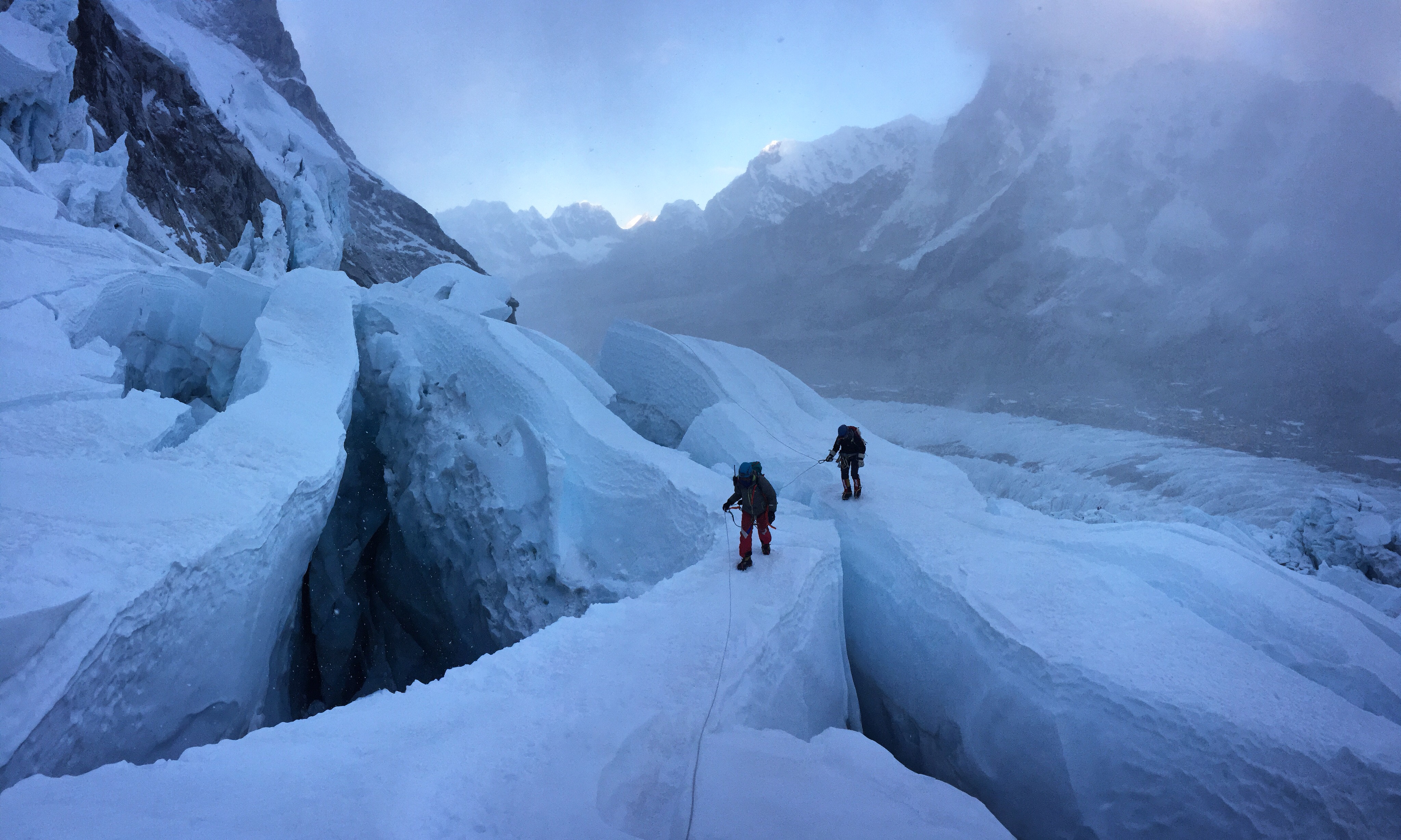 Awesome photos. The icefall is looking edgy as usual. Hope you keep on top of the cough. Great job.